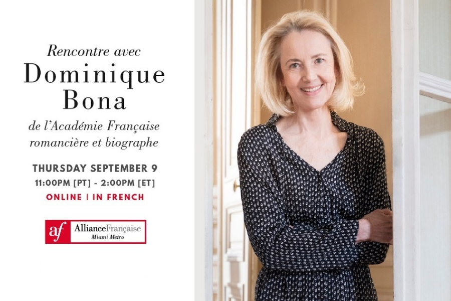« Immortelle » depuis 2013, Dominique Bona est la huitième femme élue à l’Académie Française depuis sa création en 1635. Journaliste, critique littéraire, romancière et biographe, Dominique vient à la rencontre de l’Alliance Française de Miami Metro pour nous parler de ses passions : La langue française, l’Académie, les femmes et hommes dont elle a écrit la biographie, et l’inspiration des personnages de ses romans.