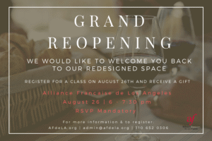 Register here! C’est la rentrée! Join us for our open house! Discover all Alliance Française de Los Angeles has to offer! Plus Wine & chee...