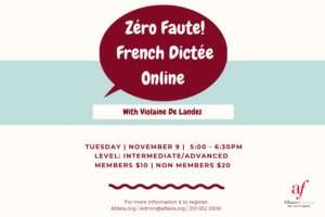 Register here! Tuesday | October 11 | 4- 5 pm PST Federation of Alliances Françaises USA In English Join us for a conversation with Sandra Smith,...