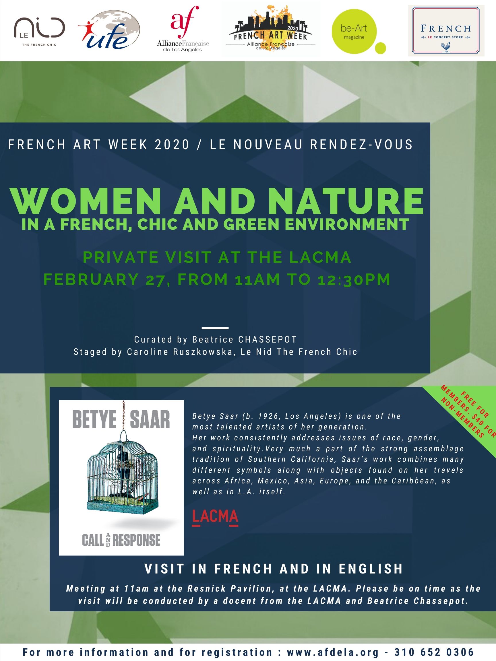 Meeting at 11am at the Resnick Pavilion, at the LACMA. Please be on time as the visit will be conducted by a docent from the LACMA and Beatrice Chassepot.