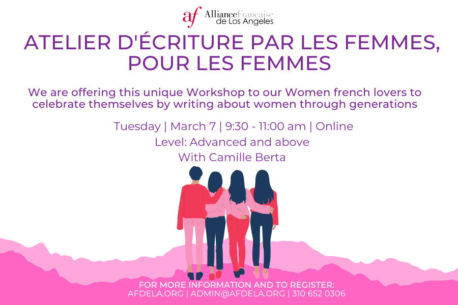 We are offering this unique Workshop to our Women french lovers to celebrate themselves by writing about women through generations.