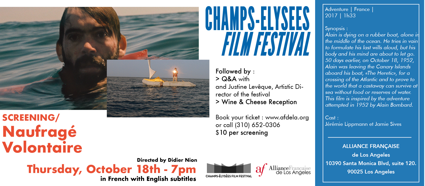 Join us for the Champs Elysees Film Festival at the Alliance Française de Los Angeles in October 16 – 17 – 18 2018.