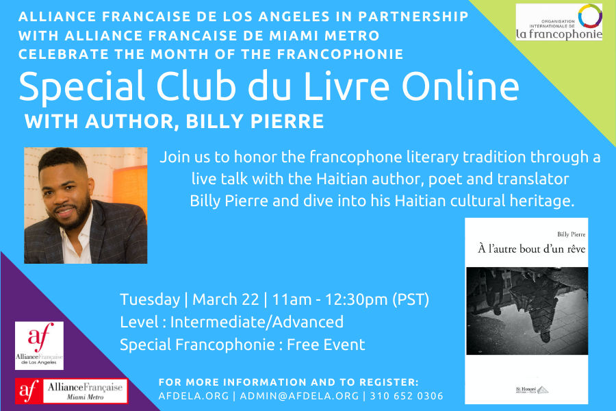 Club du Livre Online – Special francophonie with the author Billy Pierre