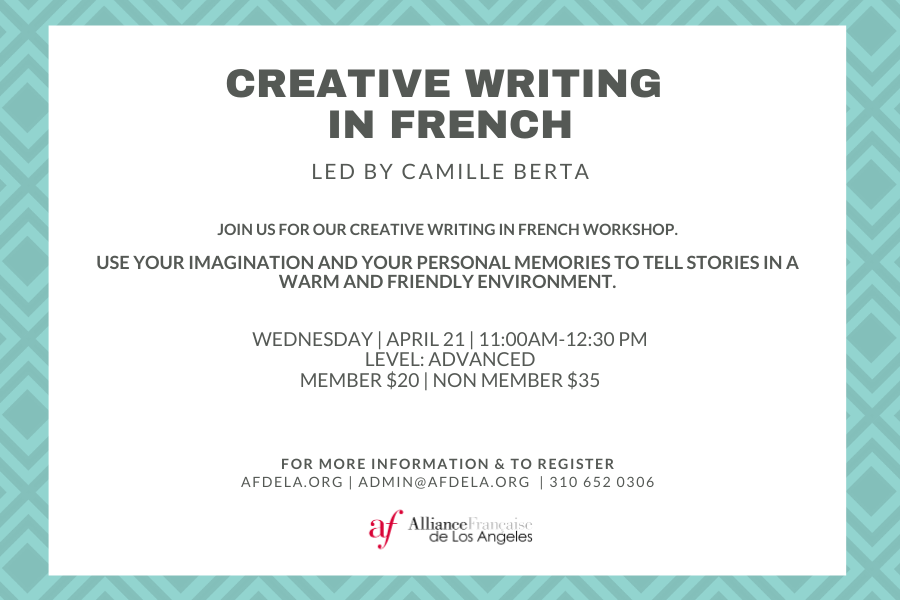 Join us for our creative writing in French workshop. Use your imagination and your personal memories to tell stories in a warm and friendly environment.