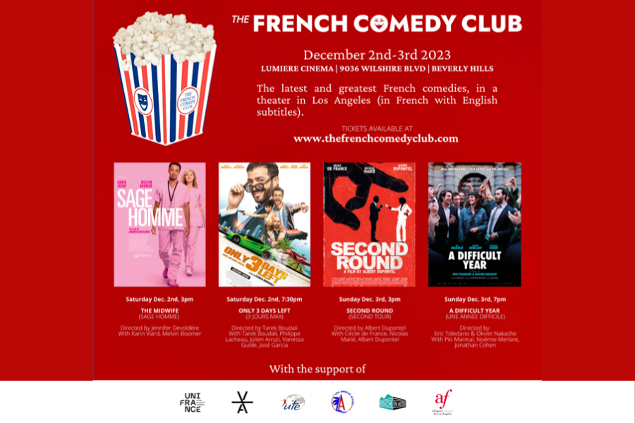 The weekend of December 2nd, we’ll be showing the latest and greatest French comedies in a theater in Los Angeles (in French with English subtitles).