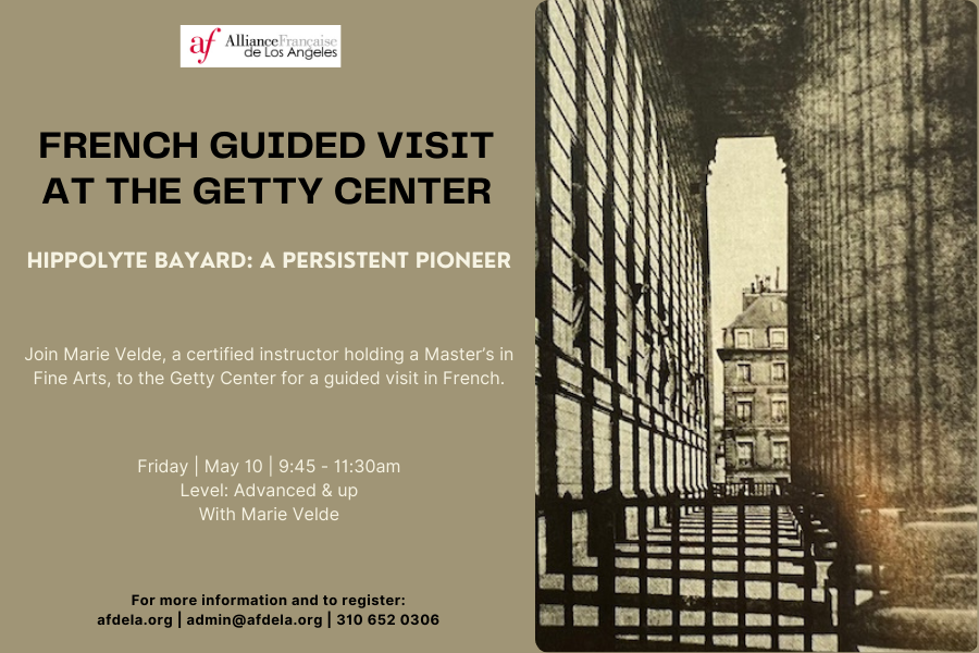 Join Marie Velde, a certified instructor holding a Master’s in Fine Arts, to the Getty Center for a guided visit in French.