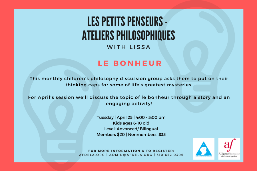 For April’s session we’ll discuss the topic of le bonheur through a story and an engaging activity!