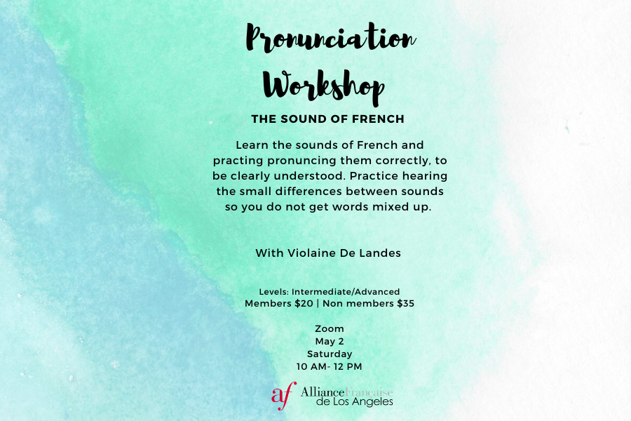 Learn the sounds of French and practice pronouncing them correctly, to be clearly understood. Practice hearing the small differences between sounds so that you do not mix up words. This workshop is amazingly helpful.