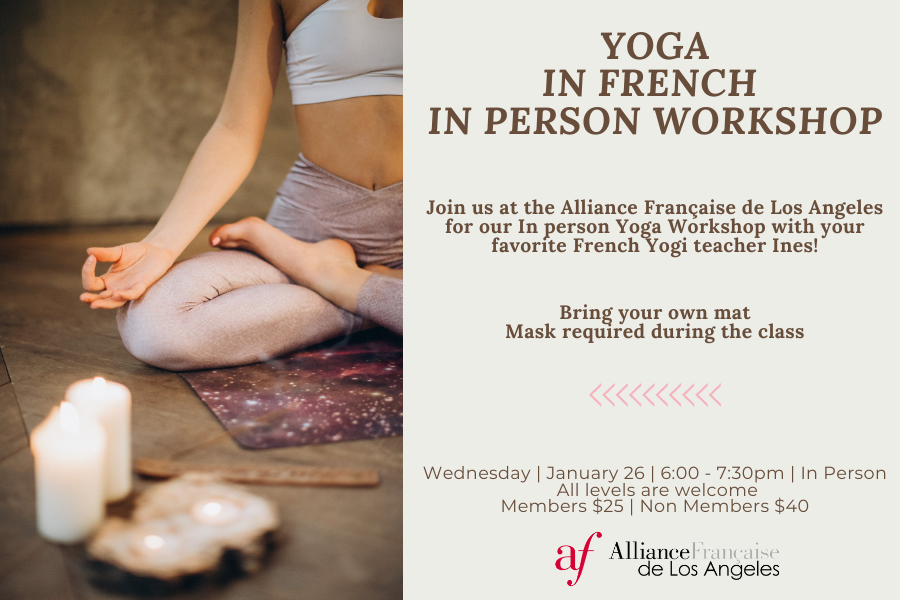 Join us at the Alliance Française de Los Angeles for our In person Yoga Workshop with your favorite French Yogi teacher Ines!
