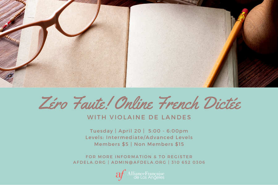 Are you ready for our collaborative Online dictée à la française and challenge your French writing in a fun way. Have a seat, grab a pen and a paper and listen to the short text read by Violaine de Landes.