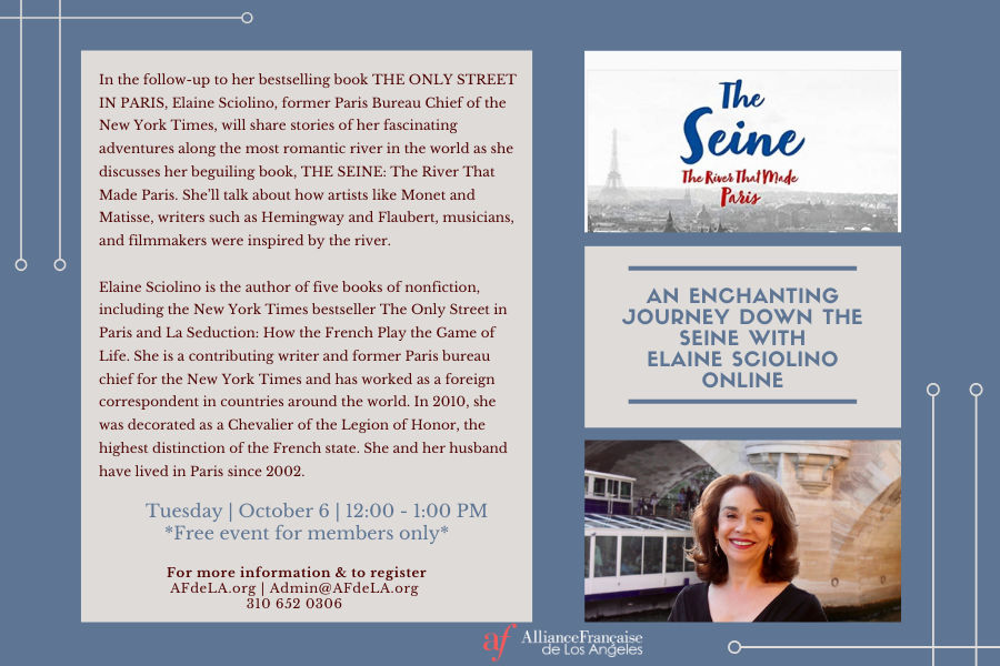 Register here! Presented in English In the follow-up to her bestselling book THE ONLY STREET IN PARIS, Elaine Sciolino, former Paris Bureau Chief of the New York Times, will share