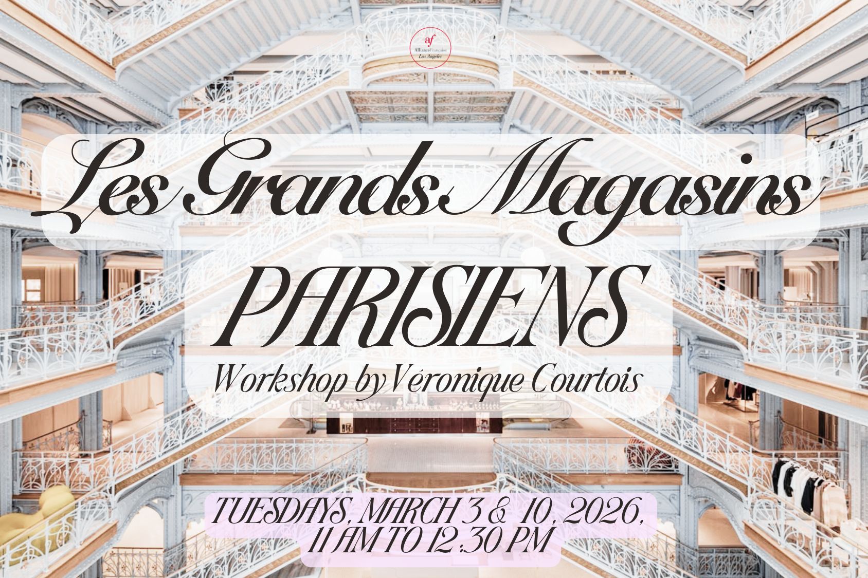 Les Grands Magasins Parisiens - Workshop let by Veronique Courtois Les Galeries Lafayette, La Samaritaine... Come and discover the history of the iconic Parisian "Grands Magasins" in these two entertaining