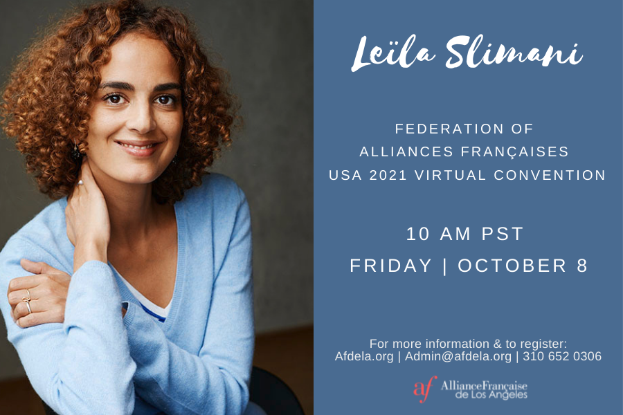 Register here! Federation of Alliances Françaises USA 2021 Virtual Convention With Leïla Slimani 10 AM PST | Friday | October 8 Born in 1981 in Rabat, Morocco, Leïla Slimani settled in